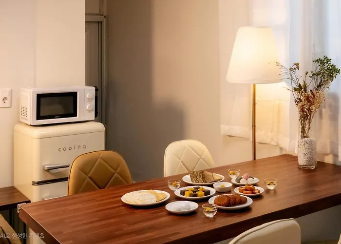 Die Ferienwohnung Sarangchae ist mit Selbstversorgungseinrichtungen wie einem Wasserkocher, einem Kühlschrank und Küchenutensilien ausgestattet, so dass die Gäste ihre eigenen Mahlzeiten zubereiten können. Die Bushaltestelle Gwangali Beach liegt in unmittelbarer Nähe von der Ferienwohnung Sarangchae entfernt.